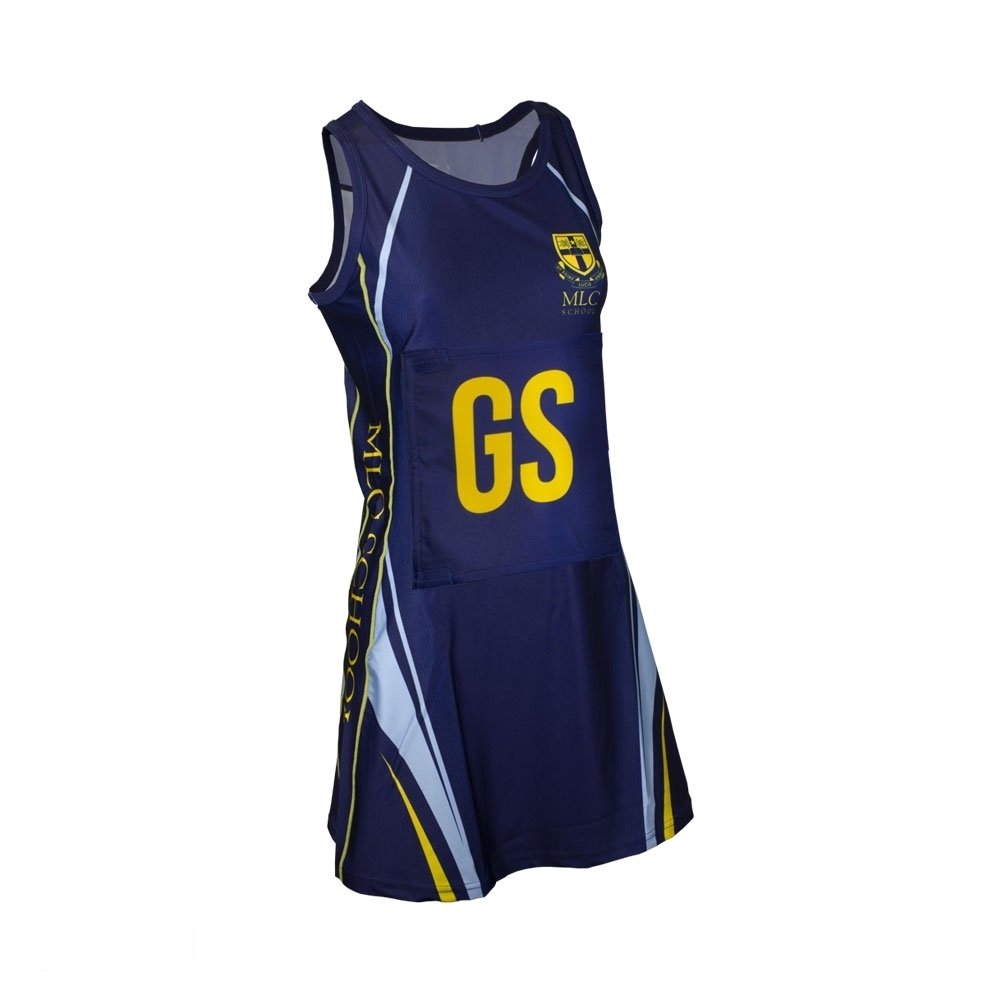 Netball uniforms made of 100% Polyester Fabric with Custom Player Names and Numbers in Tackle Twill